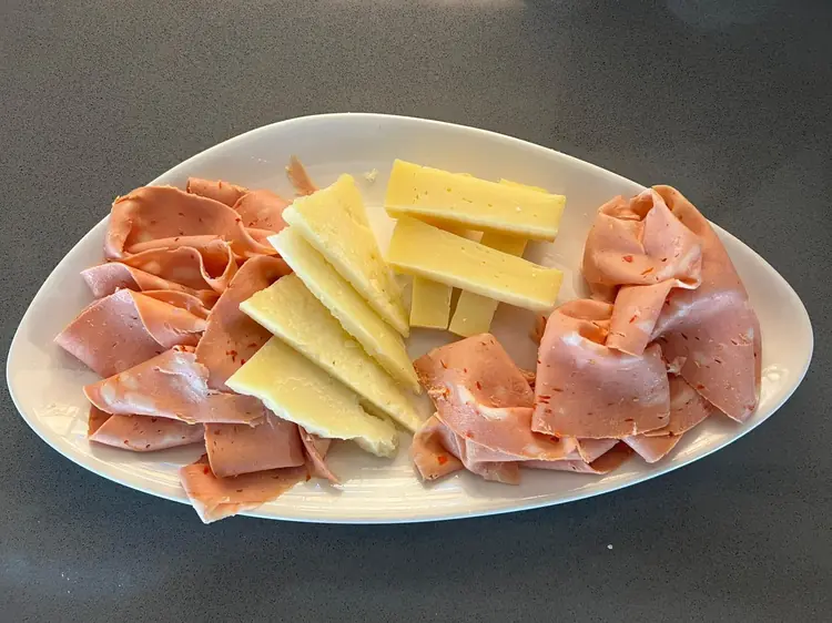 Redondo de ternera asada en lonchas finas con salsa de atún. Contiene lácteos.