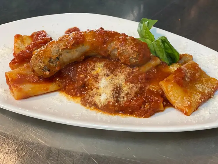 Pasta tipica de Napoles con ragù de carne ,butifarra fresca siciliana y queso de oveja curado rallado.